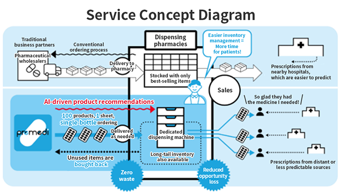 Kirin’s new business, premedi provides inventory management services to dispensing pharmacies.