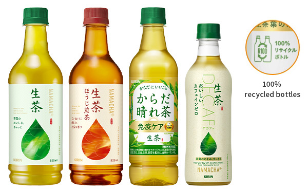 The Kirin Group is expanding its use of R100 PET Bottles, which are made from 100% recycled PET resin. This is an environmentally friendly bottle that reduces petroleum-derived resin by 90% and greenhouse gases by 50-60%.