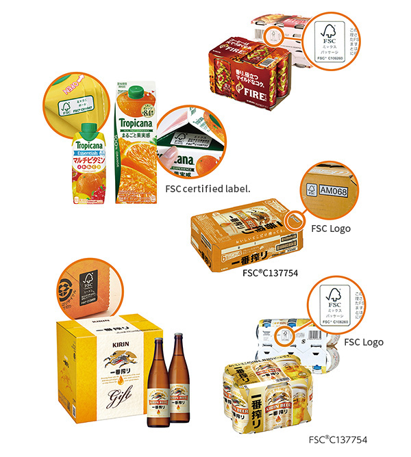 Kirin has been actively adopting FSC®-certified paper for its paper packs and packaging with the aim of conserving forest resources, and had achieved 100% usage of FSC®-certified paper by 2020.