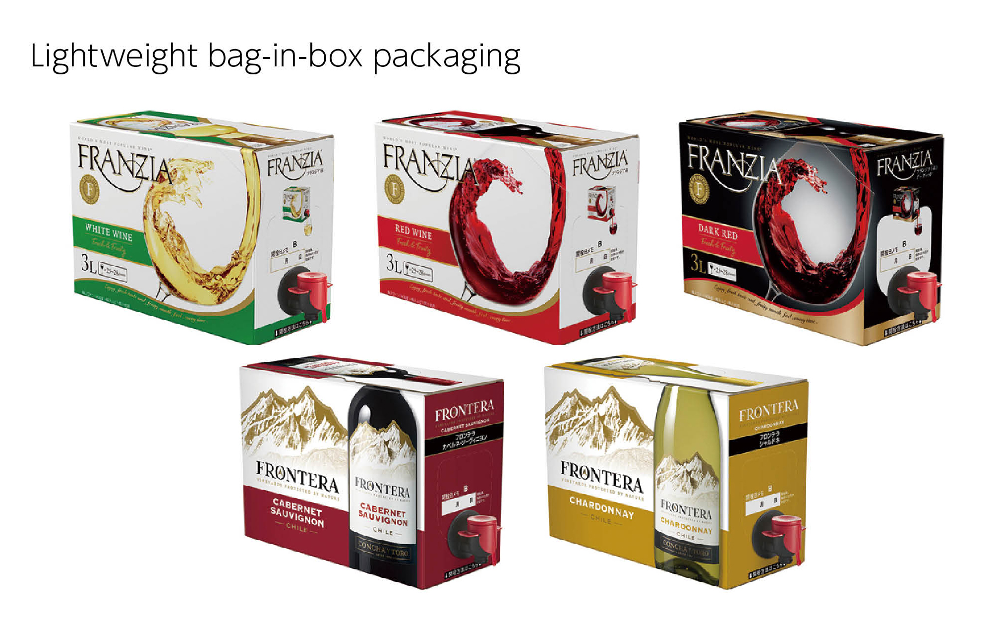 Since March 2022, Mercian has reduced the weight of containers for its wine. Specifically, this innovation was applied to five types of wine, namely FRANZIA (red, white, dark red) bag-in-box and FRONTERA (Cabernet Sauvignon and Chardonnay) wine-fresh servers.