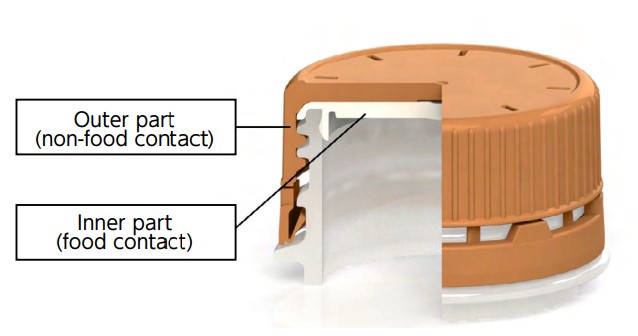 In 2024, in collaboration with Nihon Yamamura Glass Co., Ltd., we conducted Japan’s first demonstration test aimed at the practical implementation of horizontal recycling of PET bottle caps used for alcoholic beverages. This initiative enables horizontal recycling by using a two-piece cap that contains 10% recycled resin in the outer shell (non-food-contact part).