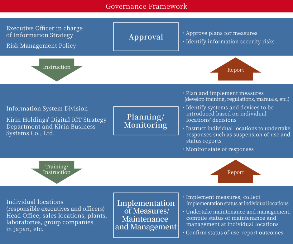 The Kirin Group recognizes information security as a critical risk and has established systematic measures based on the following three pillars: