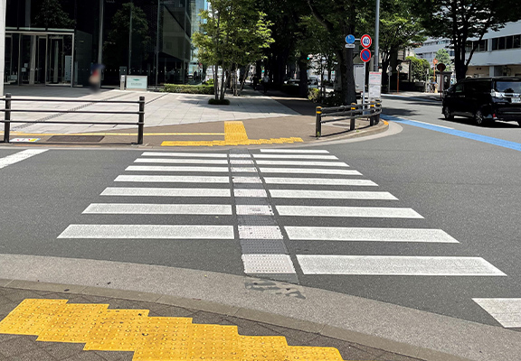 横断歩道の中央付近に点字ブロックが敷設されています。