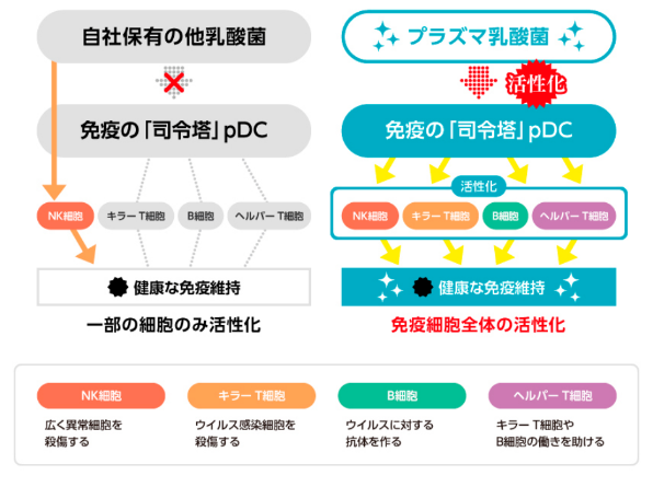 「プラズマ乳酸菌」は、「免疫の司令塔」である「プラズマサイトイド樹状細胞(pDC)」を活性化します。