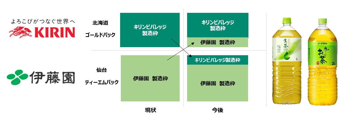 キリンビバレッジ株式会社(社長 井上一弘、以下キリンビバレッジ)と株式会社伊藤園(社長 本庄大介、以下伊藤園)は、2026年3月より、キリンビバレッジ北海道エリアの生産委託工場であるゴールドパック株式会社(本社 東京都品川区、以下ゴールドパック)北海道恵庭工場と、伊藤園東北エリアの生産委託工場であるティーエムパック株式会社(本社 仙台市宮城野区、以下ティーエムパック)仙台工場の相互活用による協働生産を開始します。