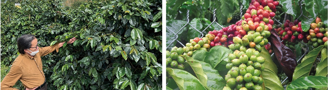 キリングループは、2020年からベトナムのコーヒー農園に対してレインフォレスト・アライアンス認証の取得支援を開始しました。2013年よりスリランカの紅茶農園に対して行っている認証取得支援の知見を生かして、ベトナムのコーヒー農園に活動を広げたものです。2022年末までに、ロブスタ種の農家350軒が新たに認証を取得し、レインフォレスト・アライアンスと合併する前のUTZの認証を取得していたアラビカ種の農家309軒がレインフォレスト・アライアンス認証への移行を完了しています。支援開始直後の2020年春から、新型コロナウイルス(COVID19)の世界的な感染拡大によって現地訪問が難しい日々が続きました。2022年10月に、ベトナムおよび日本における渡航制限がほぼ撤廃されたのを機に、標高1500mに位置する中南部のラムドン省の省都ダラットにある支援先の小農園を訪問しました。訪問先では、政府からコーヒー農家になることを推奨されたものの技術指導がほとんどされていないことで農業への知見が農家に乏しいことが分かり、認証取得のトレーニングが一定程度コーヒー農園の持続可能性に寄与していることが確認できました。2024年からは活動フィールドをベトナムのザライ県に移し、3年間で2,000のロブスタ種の生産農家の認証取得を支援する予定です。この活動では、総合害虫管理(IPM)と環境再生型農業、水源保全活動にフォーカスしています。コーヒー殻や農業廃棄物などを活用することで小農園が自律的にバイオ肥料を作り化学肥料を削減するためのトレーニングを実施し、農家の支出削減への貢献を目指します。日陰栽培や防風林のための苗を大量に提供し、カバークロップも実践することで土壌浸食の防止、地下水レベルの維持などに貢献し、生産性の向上にも寄与したいと考えています。