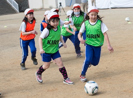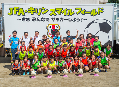 キリングループは「復興応援 キリン絆プロジェクト」の一環として、公益財団法人日本サッカー協会との共催で、岩手・宮城・福島の小学校にて行ってきたサッカー教室「JFA・キリン スマイルフィールド」を東日本大震災から6年経った2017年に「JFA・キリン ビッグスマイルフィールド」として、より地域に寄り添い"元気づくり"をお手伝いする活動へ進化させ開催しています。