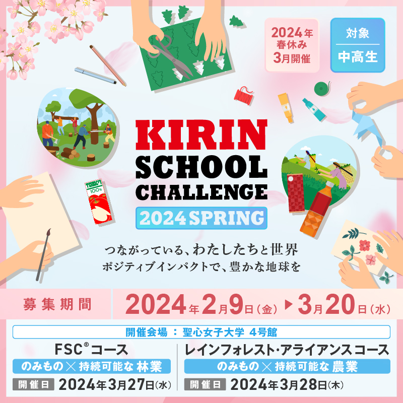 2021年春休みの「キリン・スクール・チャレンジ」参加の中高生を募集しています。オンラインにて3/26(金曜日)、4/2(金曜日)の2日間で開催予定