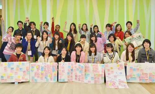 チームごとのテーブルでは、講義から学んだこと、疑問に思ったことなどが、次々に付箋に書き出されていきます。大学生や社会人の「サポーター」と一緒に付箋をグルーピングし、"持続可能な農業"や"地球のためにできる身近なこと"といったポスターのテーマを、自分たちで決めていくのです。