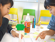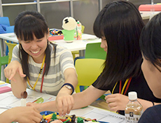 イメージが膨らんできたら、まずは一人ひとりがレゴで表現し、感じたことをお互いに伝えあいます。そしてレゴに込めた思いを重ね合わせ、同世代の人たちに伝えたいメッセージを1つ作ります。次にそのメッセージを作品に仕上げ写真に収めます。できあがった作品をみんなの前で発表すると大きな歓声がわきました。