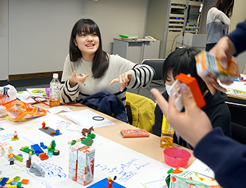 レゴRをつかった自己照会。その後は、自分達の周りにどのような紙があるか、その紙が無くなったら社会が成り立つかを考えて意見交換しました。