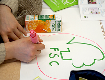 紙の重要性に気づいた後は、FSCジャパン広報担当の河野さんから世界の森林問題とその解決策であるFSC認証とその仕組みを聞きました。