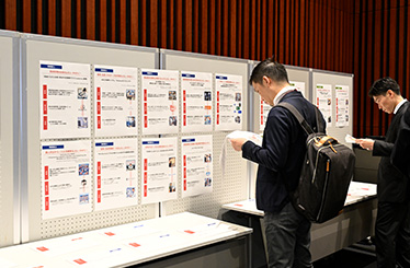 Participants reading the presentation materials of the winning project