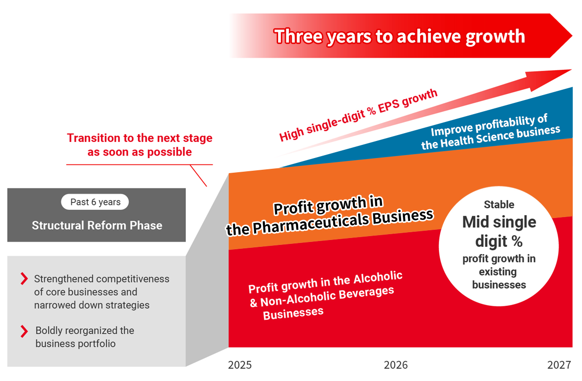 Our founding Alcoholic Beverages Business has entered its maturity stage, and in light of the declining population, society’s increased health awareness, the strengthening of alcohol restrictions, and more, I believe the strategy of maintaining a stable foundation for the Alcoholic Beverages Business, while expanding our Health Science Business, and shifting to a healthier Non-Alcoholic Beverages Business is also a viable option. In addition, our Pharmaceuticals Business not only has its own growth potential but is also a vital asset for expanding our Health Science Business. Therefore, we will maintain our current ownership structure for the time being, taking into consideration the cash allocation strategy of the entire Group.