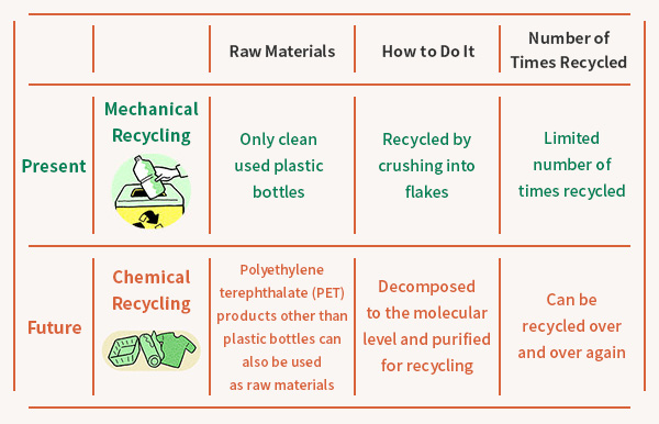 Chemical recycling, which makes it possible to recycle PET products other than PET bottles, as well as colored bottles that were difficult to recycle with conventional mechanical recycling, can be recycled over and over again. It plays a very important role in achieving a sustainable future.