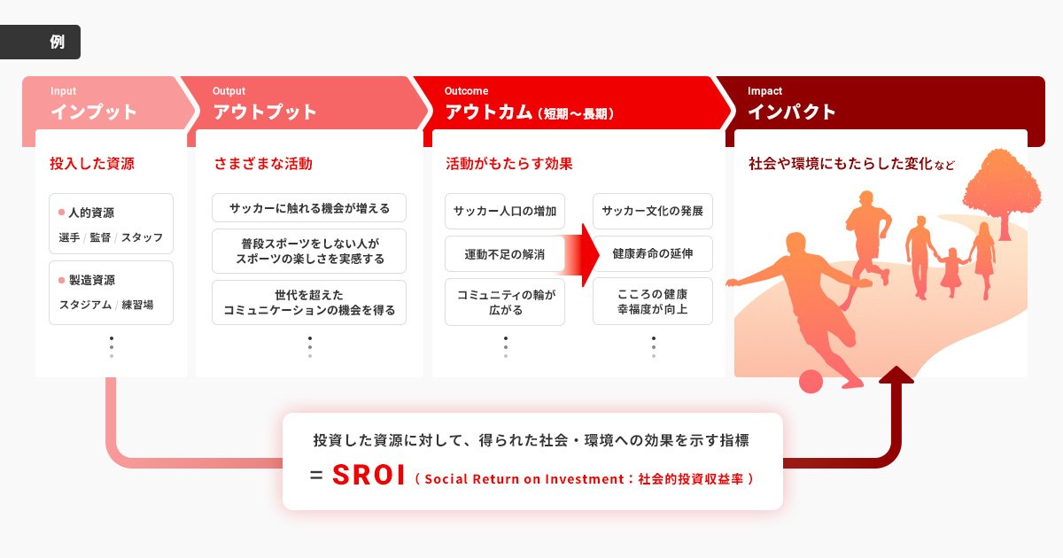 As soccer culture develops and its activities expand, soccer's influence on communities continues to grow significantly. In recent years, Kirin has focused on the global trend of "visualizing the value created by sports." Using the SROI *1(Social Return on Investment) metric, Kirin has undertaken the first ever attempt to quantify the social impact generated by its soccer support activities.