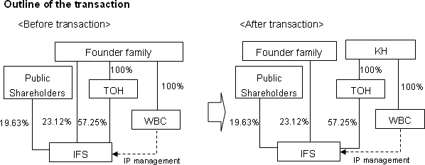 KH acquired 100% of the total outstanding shares in TOH and 100% of the total outstanding shares in WBC, which manages the intellectual property used by IFS.