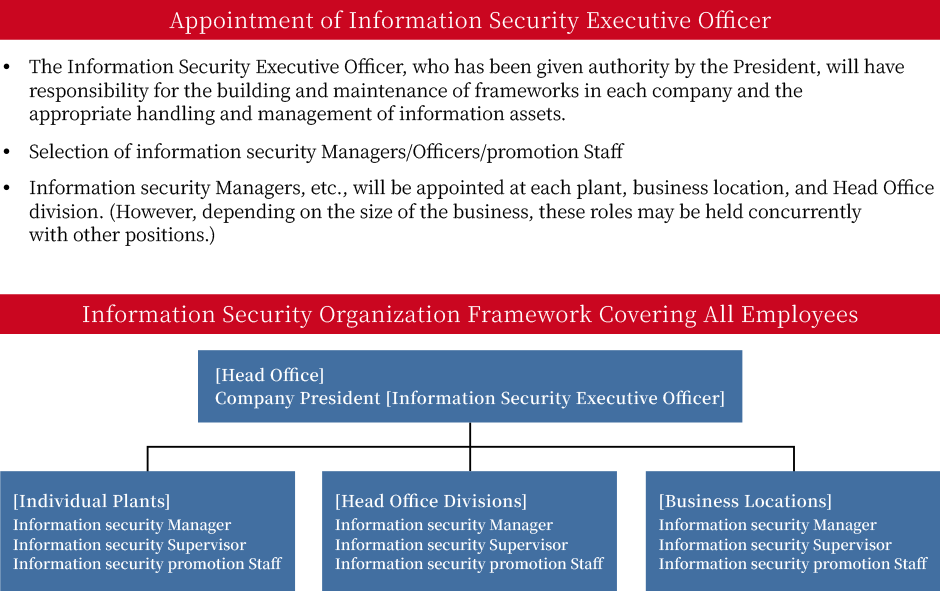 Appoint information security managers at domestic and overseas bases (factories, sales offices, laboratories, etc.)
