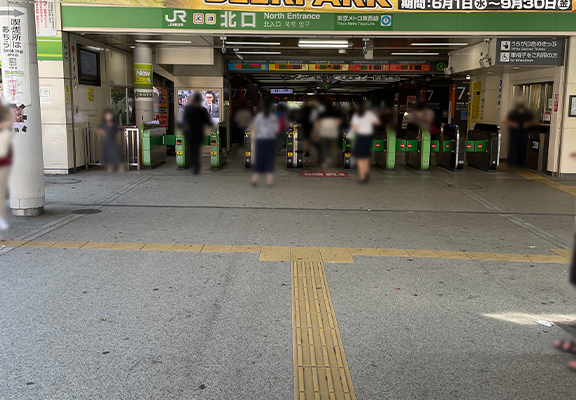 注意:駅構内側の改札前に下り階段があるのは南口改札になりますのでご注意ください。