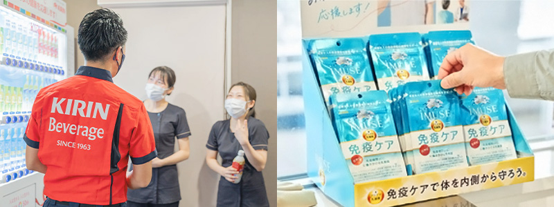 キリンはこれらの課題に着目し、医療従事者むけ免疫ケアセミナーの実施や、医療従事者・幼稚園の先生向けに免疫ケア商品の配布を行なっています。