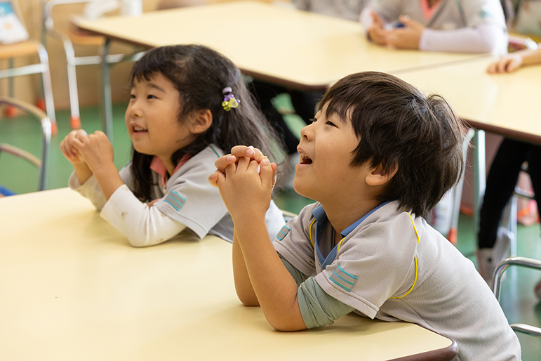 紙芝居の読み聞かせが始まると、笑顔で聞き入る子どもたち。物語を通して健康づくりに必要な要素を“楽しみながら学ぶ”という姿が見られます。ミッションに取り組む際は、「一緒にやろう」「まだ洗ってないよ?」と声を掛け合う場面も。また、以前は先生の確認や声掛けが必要でしたが、今では自ら取り組む姿が増え、手洗いやうがいも丁寧になるなど、うれしい変化があったよう。園の大事なイベントである「聖誕劇」のために、団結し合う姿も見られたのだそう。