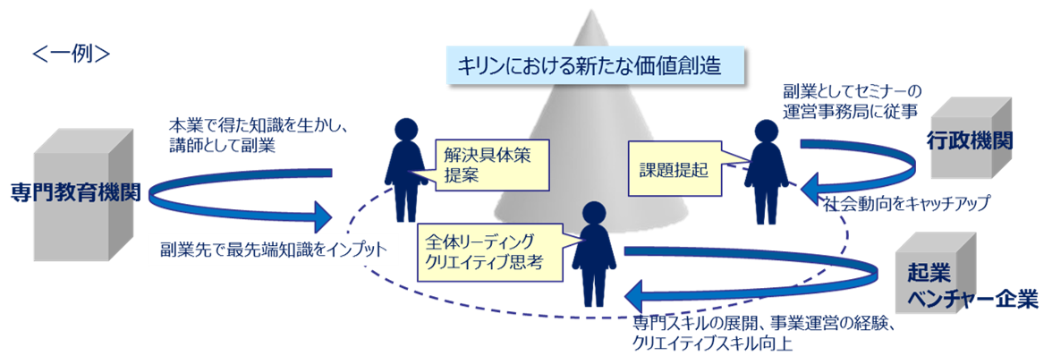 キリングループでは、属性の多様性だけではなく、個々の価値観や能力、視点の多様化を目指して、多様な知と経験を獲得できる機会を提供しています。