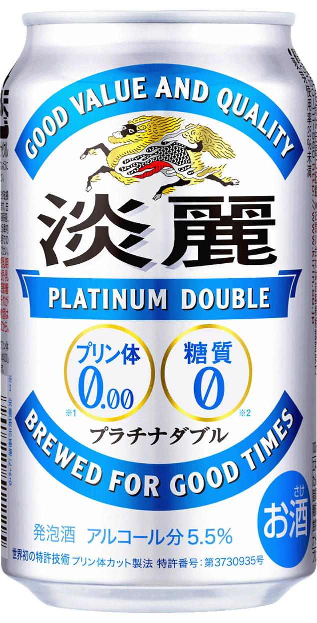 「淡麗プラチナダブル」は、「プリン体0.00×糖質0」でありながら、淡麗シリーズならではの本格的なうまさを味わえる機能系発泡酒です。「淡麗ダブル」で使用していた世界初の当社独自の特許技術「プリン体カット製法」※5をさらに進化させ、プリン体99%カットからプリン体0.00への低減を実現しました。