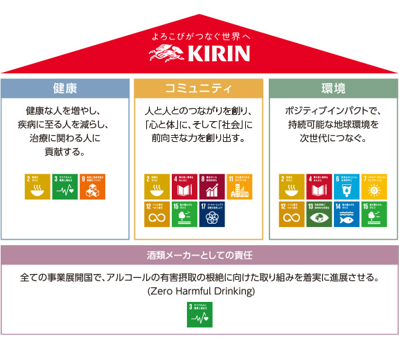 キリングループは、自然と人を見つめるものづくりで、「食と健康」の新たなよろこびを広げ、こころ豊かな社会の実現に貢献します。