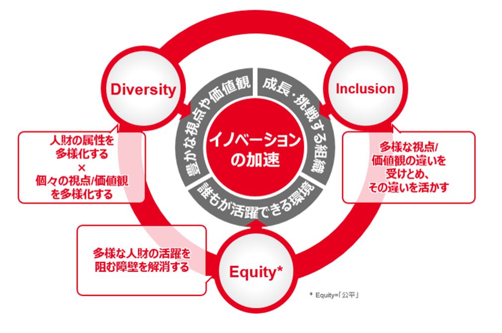 キリングループは今後も「Diversity」「Equity」「Inclusion」の3つの柱からなる「キリングループ多様性推進プラン」に沿って、「多様な人財と挑戦する風土」の実現を加速していきます。