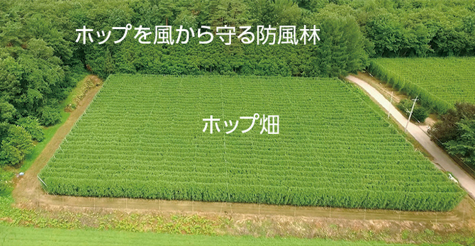 2014年から、遠野市の契約農家のホップ畑で生きもの調査を行い、2015年には昆虫類104種、鳥類19種を確認しました。ホップ畑は毎年耕耘するので畑自体に植生を豊かにする機能はありませんが、ホップを栽培するために防風林を作り維持してきたことや、ホップ畑が里地里山の豊かな生態系システムの1つとして機能し続けることが、植生の豊かさに寄与していると言えそうです。