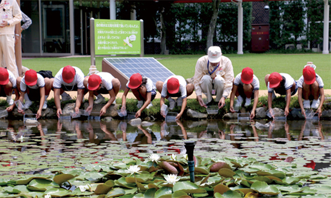 キリンビール岡山工場では、地域の方々と共に2005年から国指定の天然記念物アユモドキの保全活動を行っています。毎年、地元小学校が育てたアユモドキの人工繁殖個体を敷地内のビオトープに放流し、地元の瀬戸アユモドキを守る会や専門家などと連携しながら、成育しやすい環境を整備し、定期的に生態調査を実施しています。