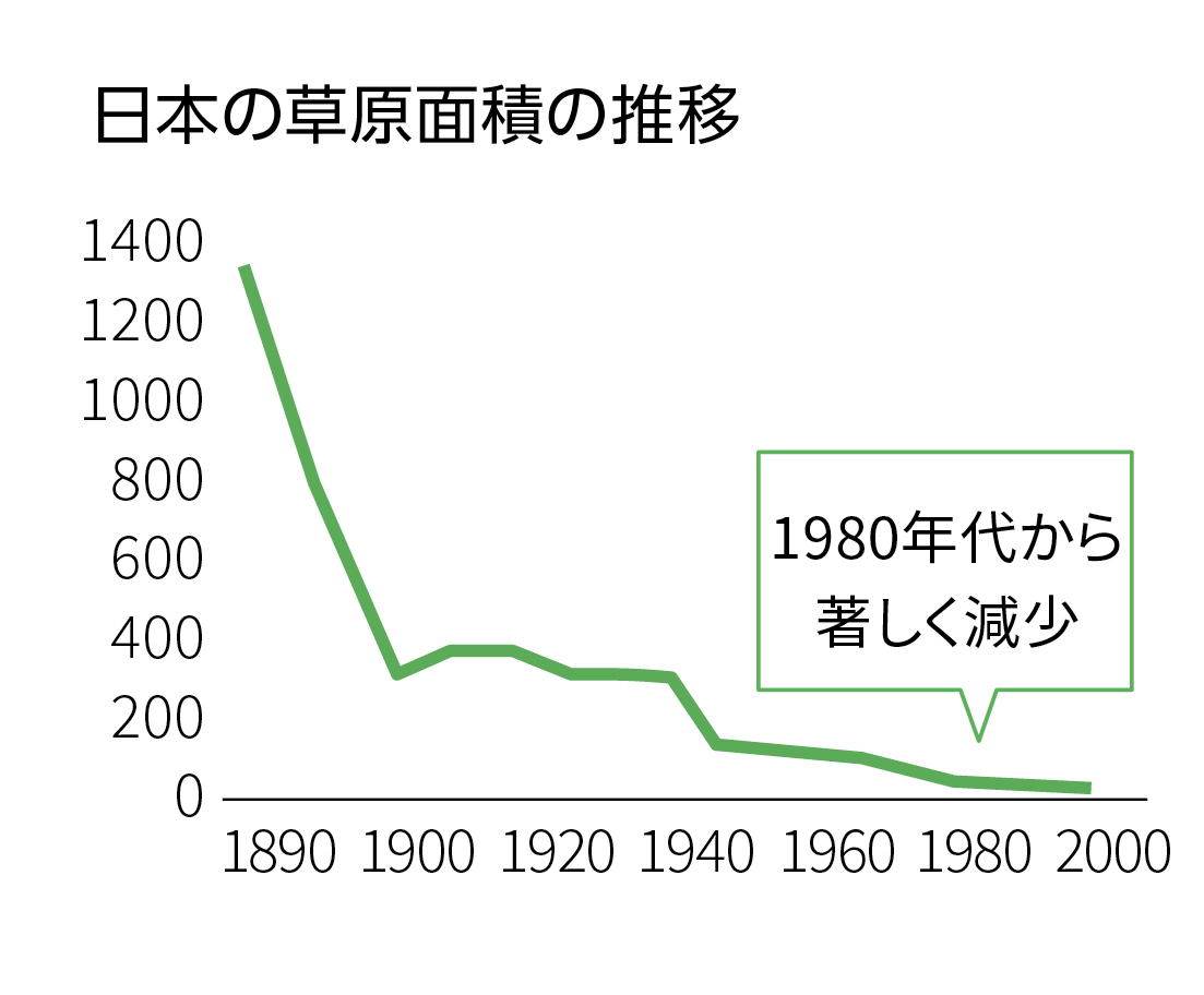 国立研究開発法人 農業・食品産業技術総合研究機構(以後、農研機構)の研究員を招き、長野県上田市丸子地区陣場台地にあるシャトー・メルシャン椀子ヴィンヤードで2014年から実施している生態系調査で、環境省のレッドデータブックに掲載されている絶滅危惧種を含む昆虫168種、植物289種を確認しています。山梨県甲州市勝沼の城の平ヴィンヤードでも、絶滅危惧種を含む多くの希少種が見つかっています。日本ワインのために遊休荒廃地を草生栽培のブドウ畑に転換することは、事業の拡大に寄与するとともに、現代の日本に貴重な草原を創出し、豊かな里地里山の環境を広げ、守ることにもつながっています。自然には、人の手がかけられていくからこそ守られていく“二次的自然”と呼ばれる形態があります。その代表例が草原です。日本ワインのためのブドウ畑は垣根仕立ての草生栽培のために定期的に下草刈りを行いますが、このことが畑を良質で広大な草原として機能させ、繁殖力の強い植物が優勢になることなく在来種や希少種も生育できる環境を作ります。椀子ヴィンヤードは、COP15で採択されたグローバル目標「2030年までに陸域の30%ならびに海域の30%を保護する」(30by30)の対象である「保護地域以外で生物多様性保全に資する地域(OECMs:Other Effective area-based Conservation Measures)」に位置づけられています。130年前には日本国土の約30%を占めていたという草原ですが、今は国土の1%にまで減少しています。草原は、単位面積あたりの絶滅危惧植物の割合が極めて高く(下図参照)、生物多様性を保全する上で貴重な役割を果たしています。2023年10月に民間や自治体などが所有している生物多様性の高い地域である“自然共生サイト”において、事業として農作物を栽培している場所としてはその時点で唯一環境省から認定を受けました。また2025年3月には、山梨県の城の平ヴィンヤードも、“自然共生サイト”として認定されました。
