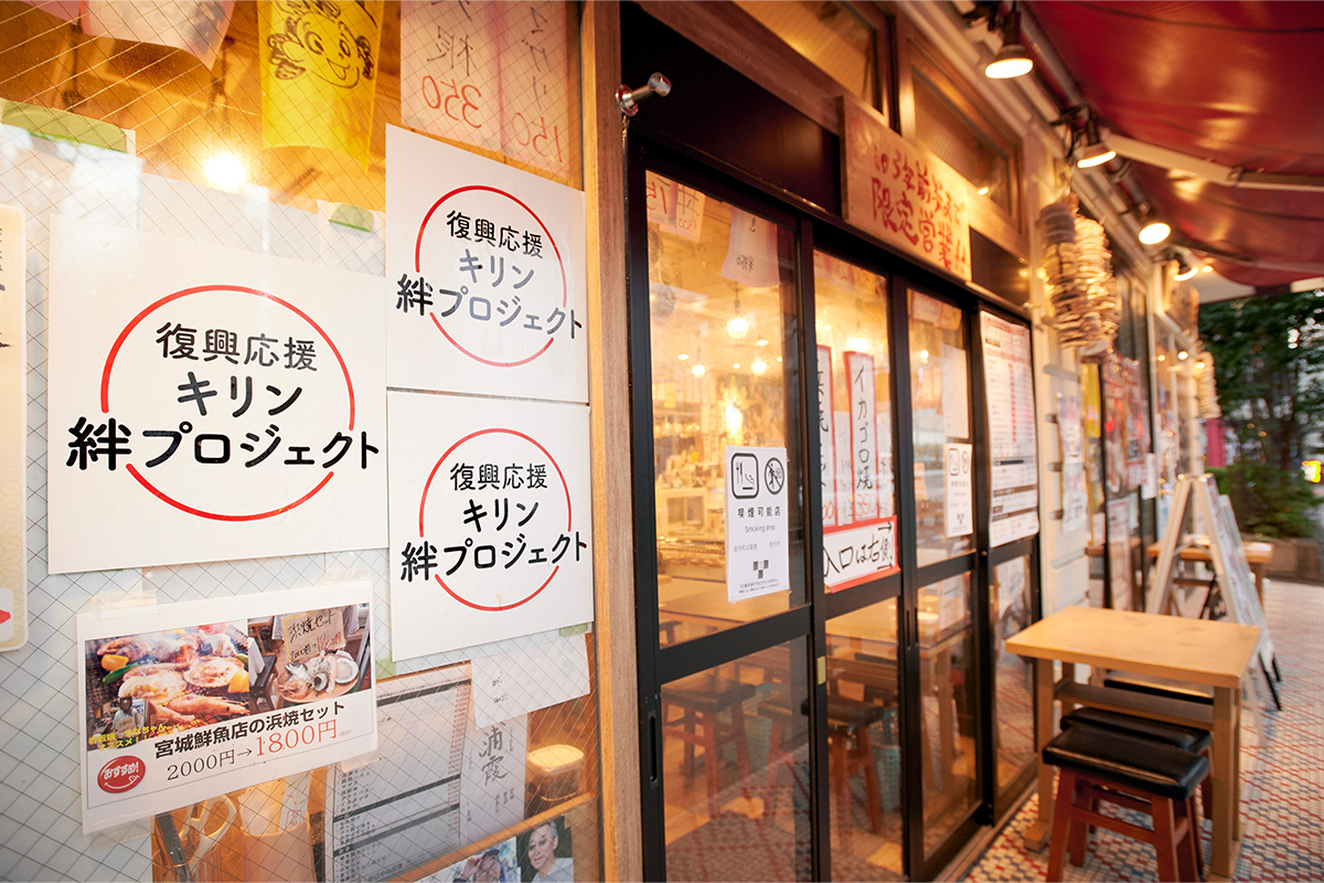 そのうちのひとつが、事業や「復興応援 キリン絆プロジェクト」のつながりを通じて関わらせていただいた、「仙台駅前 みやぎ鮮魚店」のオープンです。期間限定の店舗ではありますが、宮城県の美食を詰め込んだようなコンセプトショップです。お店の企画立案から行政を巻き込んだPRまで、幅広くお手伝いさせていただきましたが、これは地域の皆さんとじっくり話し合う時間があってこそ、実現できたことです。