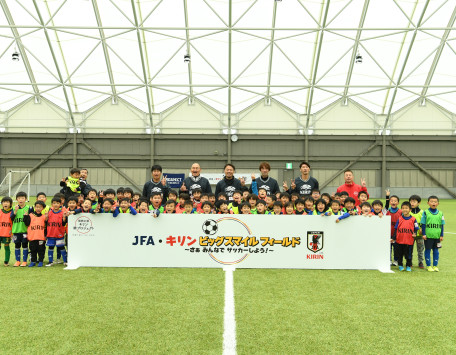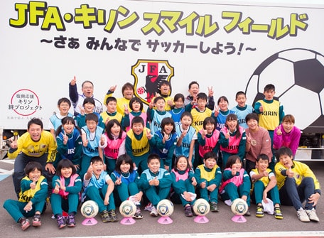 キリングループは「復興応援 キリン絆プロジェクト」の一環として、公益財団法人日本サッカー協会との共催で、岩手・宮城・福島の小学校にて行ってきたサッカー教室「JFA・キリン スマイルフィールド」を東日本大震災から6年経った2017年に「JFA・キリン ビッグスマイルフィールド」として、より地域に寄り添い"元気づくり"をお手伝いする活動へ進化させ開催しています。