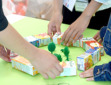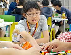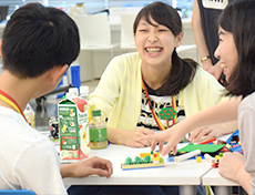 イメージが膨らんできたら、まずは一人ひとりがレゴで表現し、感じたことをお互いに伝えあいます。そしてレゴに込めた思いを重ね合わせ、同世代の人たちに伝えたいメッセージを1つ作ります。次にそのメッセージを作品に仕上げ写真に収めます。できあがった作品をみんなの前で発表すると大きな歓声がわきました。