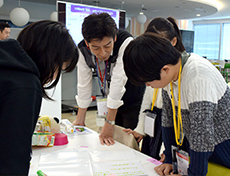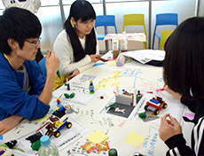 午後になって、まずは感じたことをレゴで表現してみました。更にチームの中で各メンバーの想いをつなぎあわせ1つのメッセージに仕上げます。