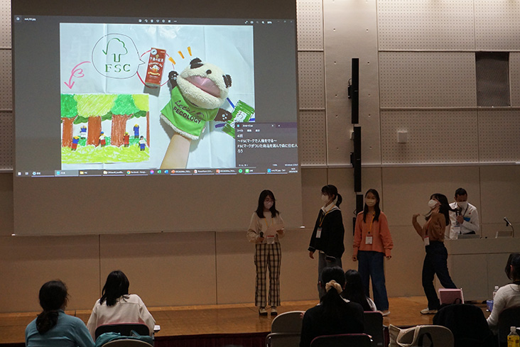 参加した中高生の作品は「こども国連環境会議推進協会」のツイッター・アカウントで発信し、2023年4月10日(月)~5月21日24:00(日)の間、「FSC」「レインフォレスト・アライアンス」の各回で、最も多くの各リツイート数を獲得したチームが優勝です。1年を通じてテーマ毎の優勝チームを決めて、来年の冬または春休みに表彰式を行い、表彰状とエコパンダのパペットを進呈することになっています。